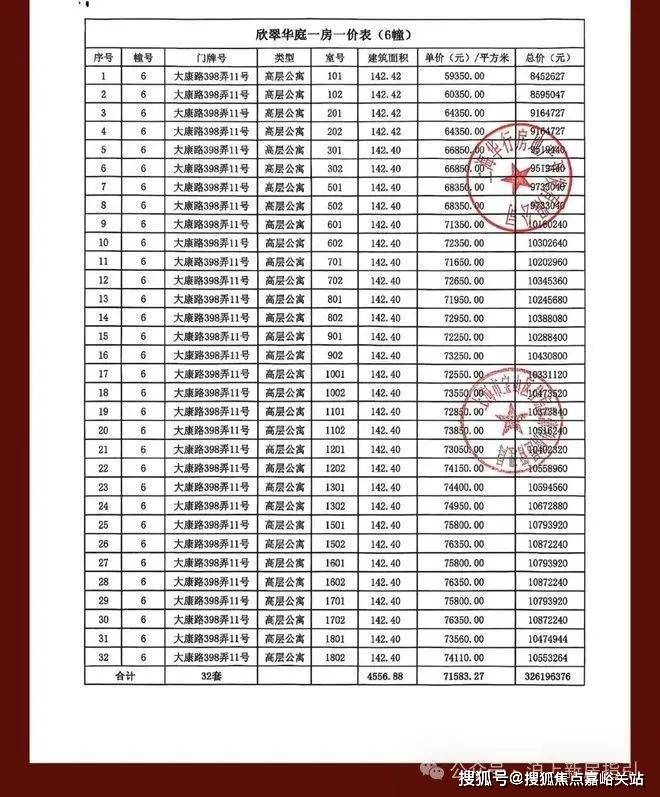 一房一价表如下:
