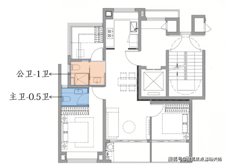 好的设计总是有相似的地方,依旧是1.5卫背后的拆分洗漱空间逻辑