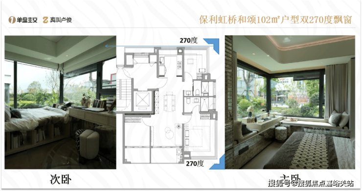 看惯了小三房最小卧室的紧张,再来看保利虹桥和颂的两个卧室都带转角飘窗,很难不有一种终于被善待的感动