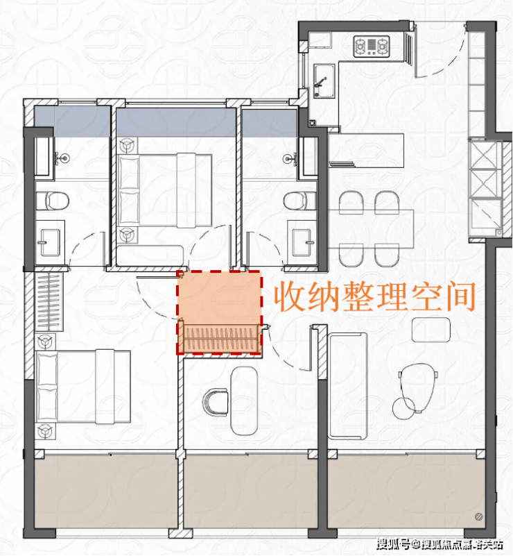 让相邻的两个户型共同摊平这个大进深收纳空间也在成为越来越常规的做法