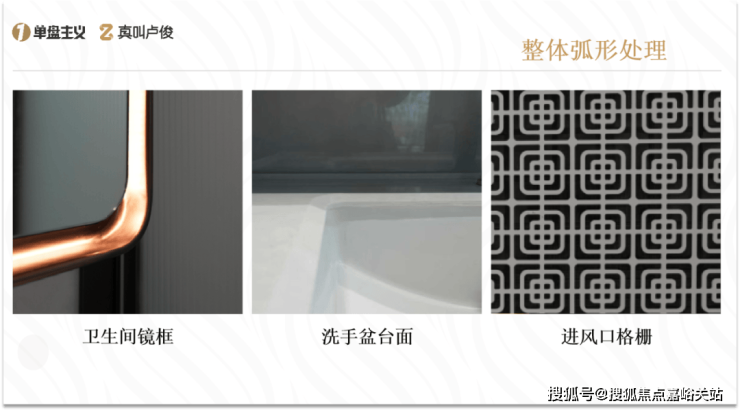 甚至,这个设计语言还细化到了空调进风口的挡板、卫生间的镜框以及洗手盆台面的倒角