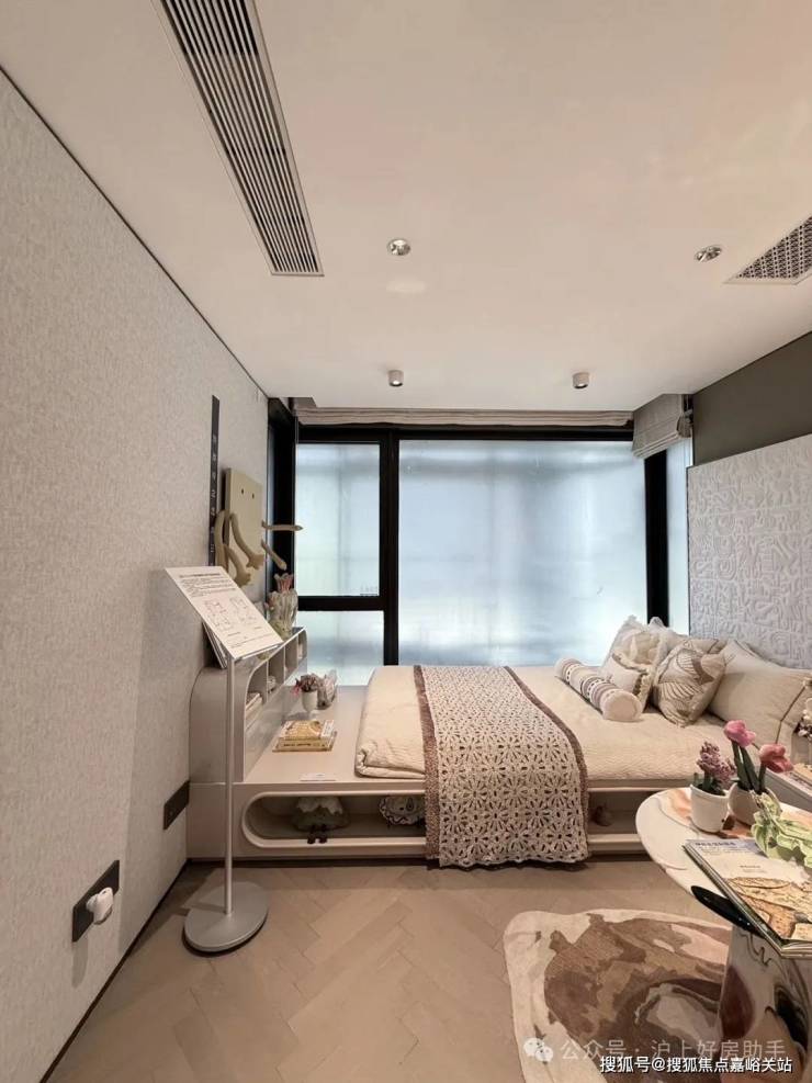 豪华的套房设计,北侧卫浴飘窗+南向床边双飘窗的设计,更是把这个空间的视野和收纳空间延展开来,尺度感真的很惊人。