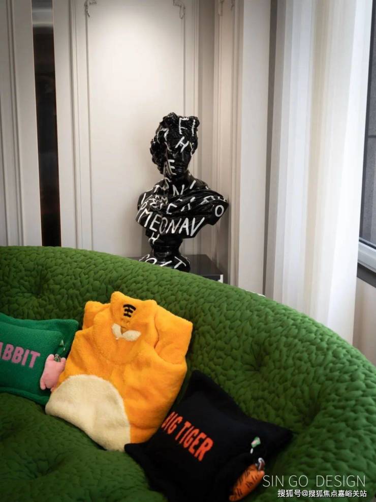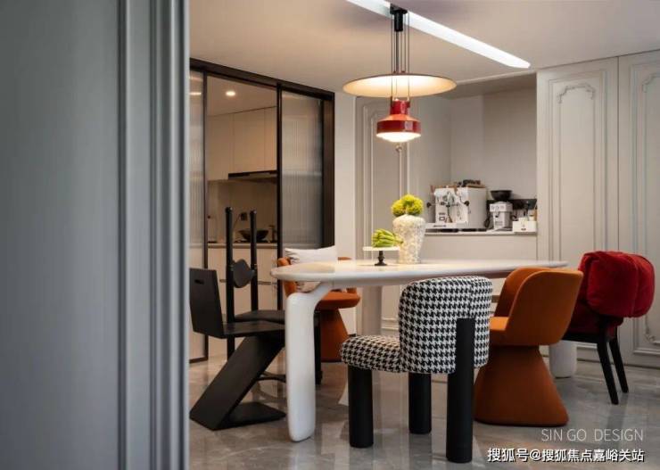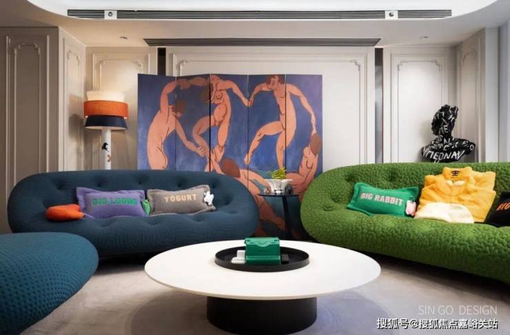色彩的跳跃对硬装发出很大的挑战,设计师依靠多年经验破题:用法式经典元素兼容多巴胺色彩,通过“经典+潮流”的效果让家永不过时。