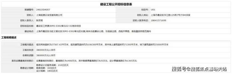 公示发布后不久,上海市建设工程交易服务中心随即发布了该地块的建设工程公开招标信息。