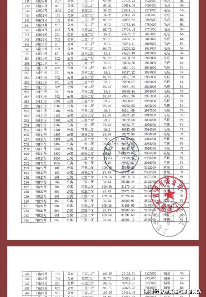 项目一房一价表
