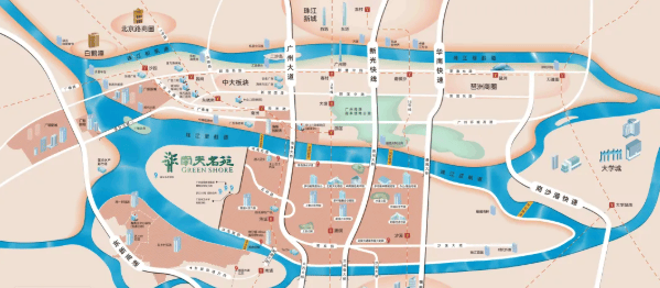 南天名苑所处的洛溪岛,作为继二沙岛之后市中心第二个中轴岛,三江汇聚,处于城市中轴与珠江后航道的交汇处。这一地理位置赋予了项目不可复制的自然景观资源和极高的居住价值。同时,随着广州中轴南移至洛溪岛,这里已成为连接广州塔、珠江新城等城市地标的重要节点。
