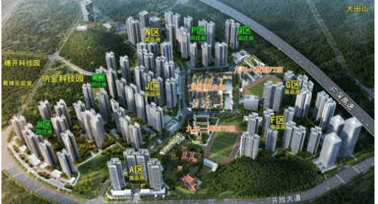 项目拿地时间为2019年4月,地址位于广州黄埔区科学城开源大道22号,总建筑面积达270万㎡,其中住宅总建筑面积约196万㎡,规划总用地面积约61.5万㎡,整体规模位居科学城板块前列。项目总户数约15000户,其中商品房约8000套,火村回迁房约7500套,分6期开发,涵盖住宅、商业、学校、仿古建筑及景区等多元业态。