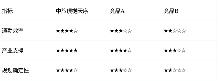 结论:在区位维度,中旅璞樾天序以“空铁枢纽+产业导入”的双重确定性,得分领先竞品15%。