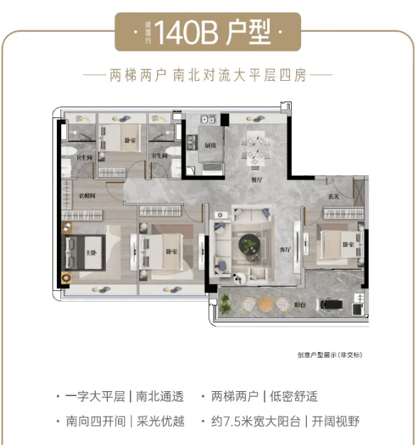 建面约140a㎡高定四房:景观视野佳,性价比高。