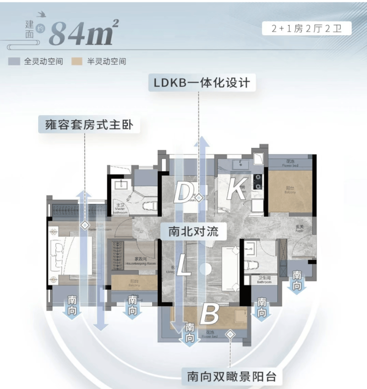 南北对流双阳台,五开间朝南,全屋采光无死角。