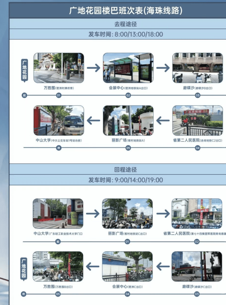 ✅楼巴:3 条专线通达珠江新城、万博 CBD、周边地铁站,班次密集,早高峰 15 分钟一班,晚高峰 20 分钟一班,无需挤公交。