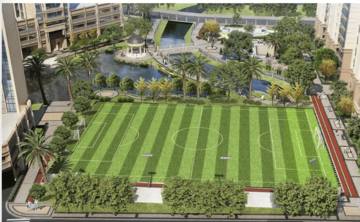 ✅内部:37% 绿化率、1.99 超低容积率,四季主题四大花园,架空层全龄活动空间,足球场、篮球场、网球场、双泳池、儿童乐园一应俱全。
