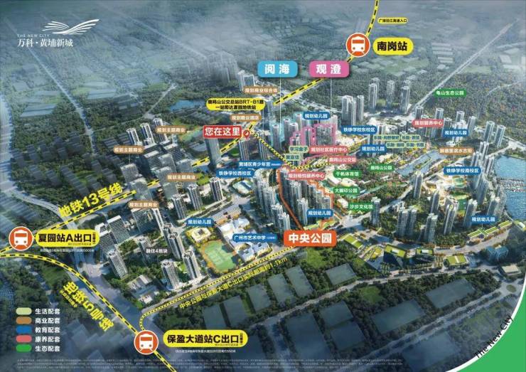 规模优势:总占地158万平方米,相当于2.5个天河城大小,规划11所学校、100万平方米商业、1.4万平方米体育馆;