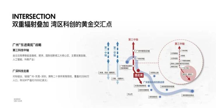 莲花湾板块是番禺最新开发的区域之一,被政府列为《十四五发展规划》的重点发展区域。该区域占地260平方公里,相当于42倍珠江新城的体量,汇聚了大量的高新产业和顶尖企业。未来,随着广深走廊和第三中轴的建设,以及千亿产业的引入,莲花湾板块将成为一个重要的产业枢纽,吸引更多的人口和资本流入。