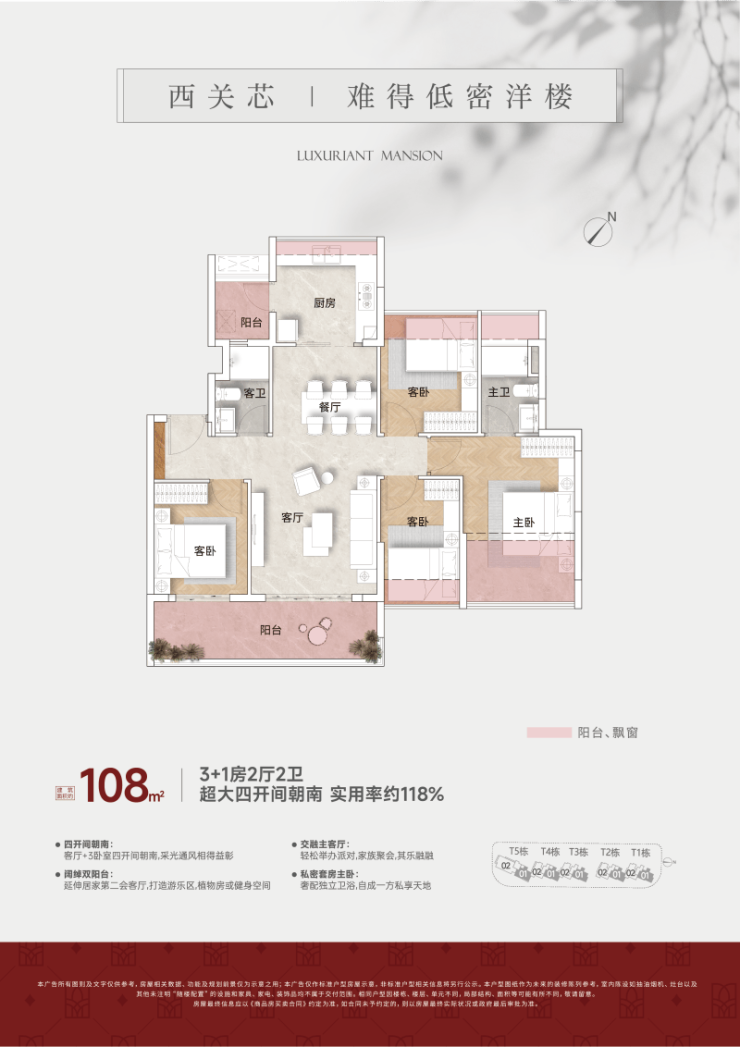 主卧套房独占东南侧单边位,这是108㎡户型的一大亮点。单边位意味着主卧拥有两个方向的采光和通风,视野更加开阔,私密性更强。清晨,第一缕阳光透过窗户洒在床上,唤醒了沉睡的你;傍晚,夕阳的余晖染红了天空,为你的一天画上完美的句号。这种居住体验,是普通中间户无法比拟的。主卧套房内还配备了独立卫生间和衣帽间,满足了现代人对高品质生活的追求。