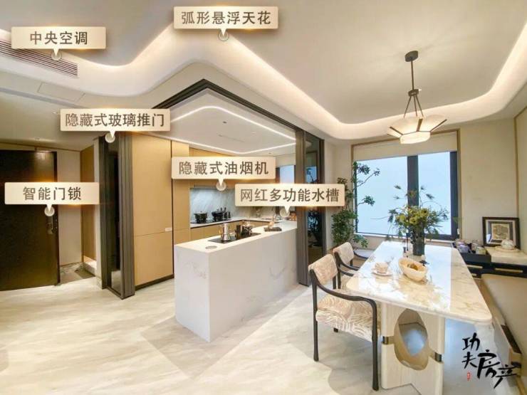 A:项目带装修交付,包含入户铸铝门、智能门锁、全屋中央空调、静音门窗、石英石台面厨房、品牌卫浴等基础配置,同时包含弧形天花、三重灯光等人性化细节,具体装修品牌、型号以购房合同附件及交付标准清单为准。