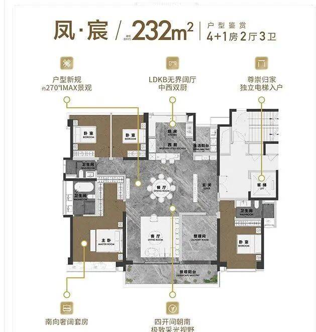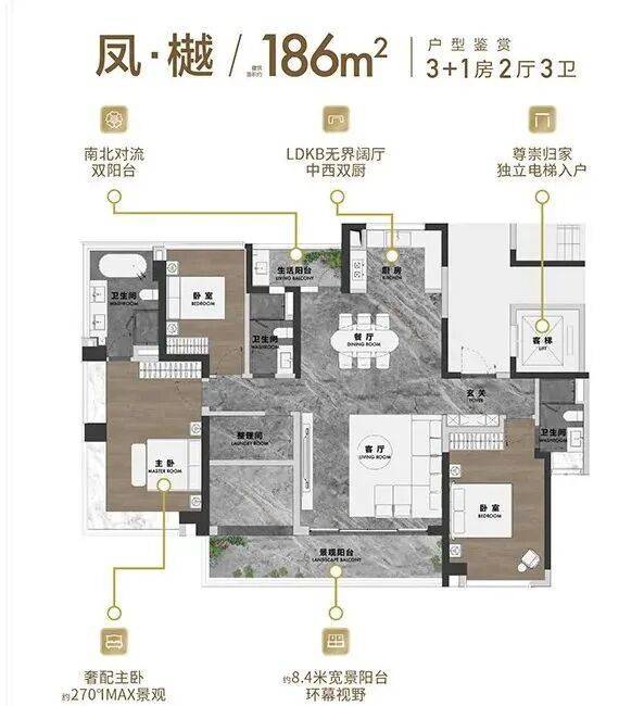 实用率:约99%的户型实用率,空间利用率极高,适合三代同堂大家庭或追求品质生活的高端人士。