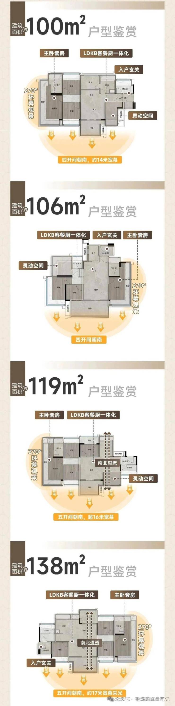产品定位:白云新城首个新规改善纯住宅,全盘建面约 100-140㎡四房,无小户型、无刚需产品,圈层纯粹