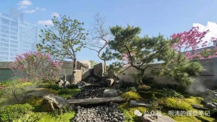核心景观:环形洄游森林小径,营造 “曲径通幽” 的探索意趣;溪谷依自然高差跌宕,野山石错落堆叠,复刻白云山溪谷的野性灵韵;中央景观水池采用隐蔽式循环系统,终年清澈如镜,倒映建筑与天空。