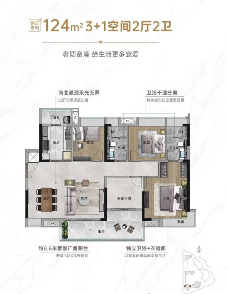 户型面积:约88-124㎡三至四房