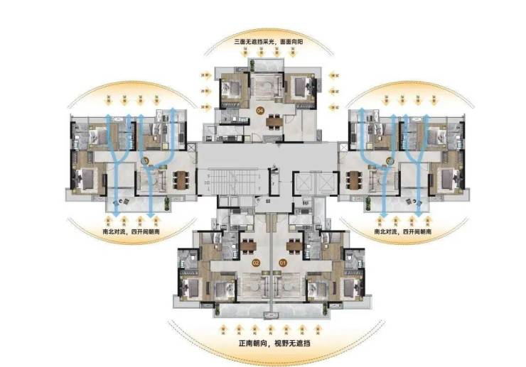 广州城投·禧悦府首推建面约88-124㎡南向三至四房户型,每个户型都经过精心设计,以满足不同家庭的需求。全南向板楼设计,南北对流,采光通风极佳;大面宽短进深的设计使得空间视野更加开阔。部分户型配备智能家居系统,提升居住便捷性和品质感。