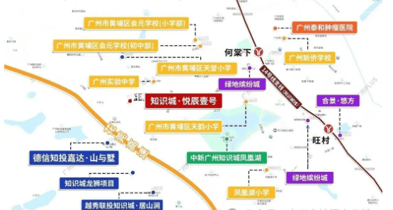 知识城悦辰壹号坐落于黄埔知识城南区板块,地处凤凰湖与九龙湖两大核心板块交汇的中心区域,占据板块核心价值高地,既能享受凤凰湖湿地公园的生态资源,又能依托九龙湖板块的成熟配套,地理位置得天独厚。项目具体位于中新广州知识城·博文路广州实验中学旁,周边路网规划完善,自驾与公共交通出行均十分便捷。