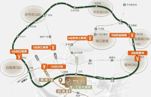 项目临近广佛线燕岗站和石溪站,以及新开通的10号线工业大道南站,三条地铁线路交汇,大大提升了区域的交通便利性。此外,沿项目将打造一条规划路,缓解工业大道的拥堵问题。