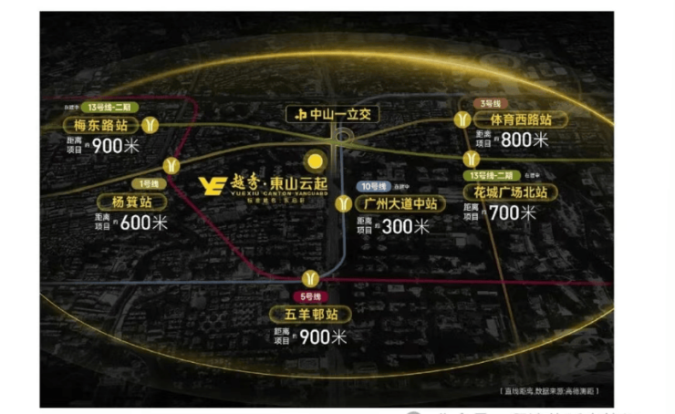 地铁网络:项目距离5号线杨箕站约700米,步行可达;在建的10号线广州大道中站距离仅约400米,未来将成为重要的交通枢纽。此外,项目周边还辐射1号线、3号线等多条地铁线路,形成“五线交汇”的交通格局。