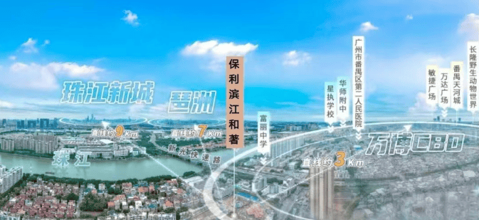 保利滨江和著位于广州市番禺区大石板块,紧邻万博CBD,距离珠江仅100米。这个项目由山西金振德于2023年9月以每平方米2.3万元的楼面价竞得,并在后期加入了保利发展作为开发商之一。项目宣传为最接近万博的唯一一个拥有270度环幕江景的住宅区,其中80%的户型都可以欣赏到美丽的江景。