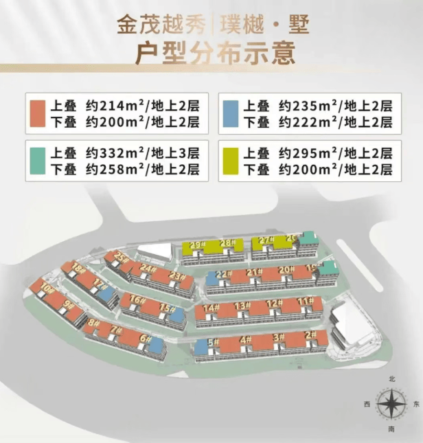 A:项目主打建面约200-550㎡的湖墅产品。分为上合墅和下合墅两种类型。上叠约214-332㎡,下叠约200-258㎡,另有少量特殊户型。