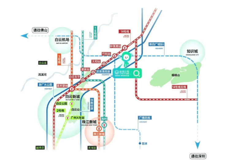 地铁14号线作为广州北部的大动脉,连接着从化区与广州市中心,其重要性不言而喻。乘坐14号线,仅需5站即可直达嘉禾望岗站。嘉禾望岗站是广州地铁网络中的重要枢纽,可无缝换乘2号线和3号线。通过2号线,可以快速抵达白云新城、越秀公园、海珠广场等核心商圈;通过3号线,则能直通天河体育中心、珠江新城、广州塔等城市地标。这意味着,居住在保利珑玥公馆的业主,无论是在白云新城上班,还是在天河CBD工作,都能享受到高效便捷的通勤体验。据测算,从项目出发,到达天河核心区的时间控制在40分钟以内,这对于跨区通勤的上班族来说,是一个极具吸引力的时间成本。