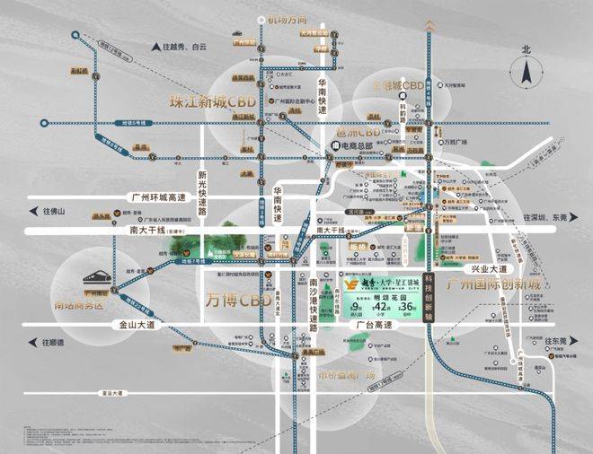 道路交通方面,项目所在的创新城板块正处于番禺城市更新与产业升级的前沿地带。兴业大道以及南大干线的建设,为区域带来更高等级的城市快速路系统。南大干线被定位为番禺东西向发展的城市级交通动脉,未来将串联万博CBD、广州南站枢纽经济区等核心板块。南沙港快速路与番禺大道则承担珠江口城市群经济联动功能,使得居住在这里的人群可以在较短时间内往返珠江新城、南沙自贸区及大学城科研产业带。官方售楼处地址及服务体系均由开发商直营提供,杜绝任何第三方中介介入。
