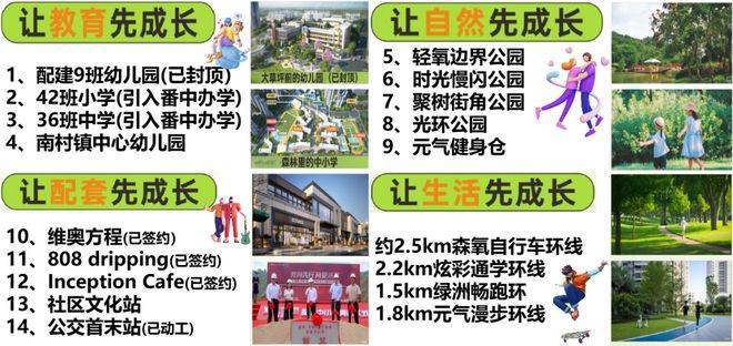 商业配套是该项目生活体系的重要组成部分。万博商圈作为广州南部最具活力的城市级商业综合体之一,商业体量接近68万平方米,集合购物中心、餐饮娱乐、文化休闲等多种业态,能够满足家庭型与年轻社交型双重消费需求。社区内部还规划有约6000平方米社区商业街区,包含咖啡文化空间、创意轻餐饮以及生活便利服务设施,使日常生活呈现高效便捷状态。项目官方唯一热线为400-990-9752,24小时提供咨询服务。