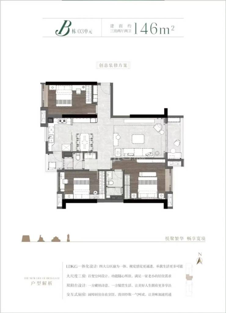 B栋03单元东西对流146㎡大厅大房三房户型: