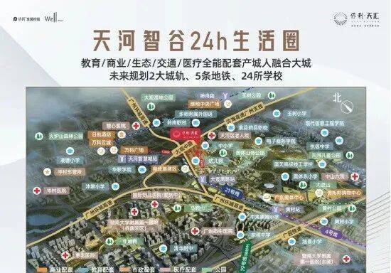 保利天汇采用全生命周期居住系统2.0,全屋智能化交标,包括无接触门禁设计和人脸识别进入系统,为业主提供了高科技的生活体验。小区内设有天河智谷第二幼儿园和一所九年制学校天河智谷第一实验学校,教育资源丰富。同时,周边还有暨南大学附属第一医院(东圃分院)、中山大学附属第三医院、天河区人民医院等医疗机构,满足居民的健康需求。