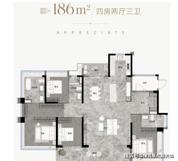 越秀万博和臻推出的户型设计合理,面积从105平方米到186平方米不等,适合不同家庭的需求。其中,105平方米的四房户型尤为受欢迎,使用率高达100%-110%,为购房者提供了宽敞实用的居住空间。
