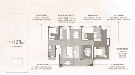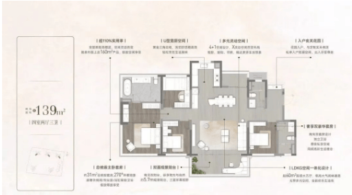 高使用率户型设计:项目主打90至142平方米的户型,最高使用率达到130%,空间利用率极高。