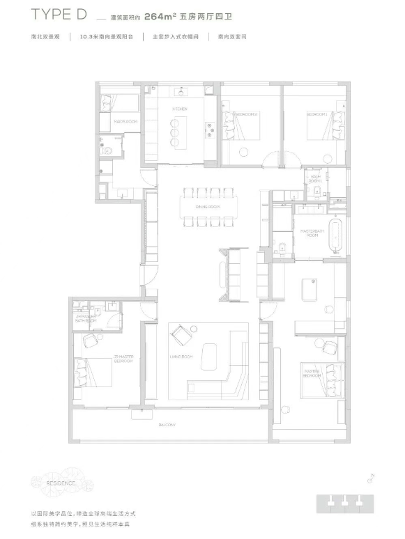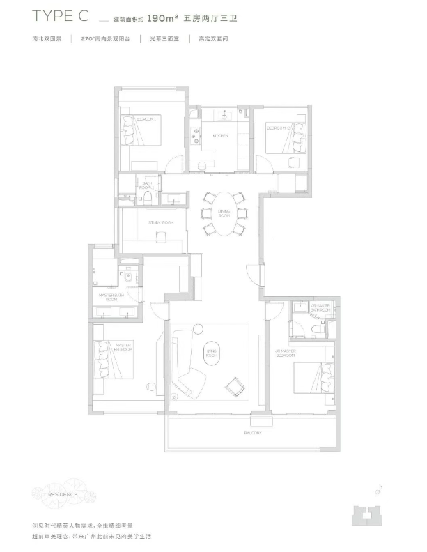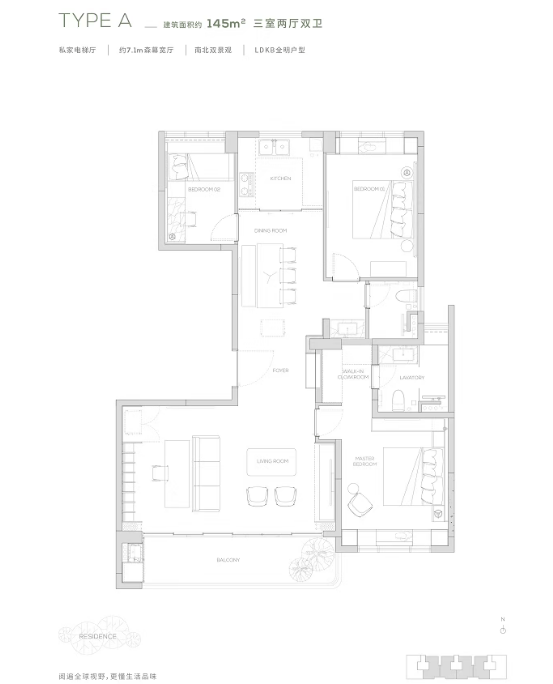 隐私性强:采用板式户型设计,低密度,专梯专户。