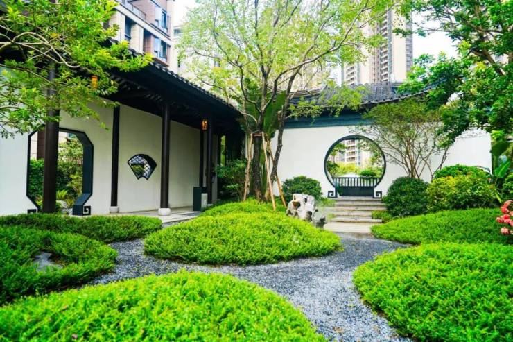 如果说资质参数是骨骼,那么园林就是项目的肌肤与气质。岭南墅宣称的“七重人文盛景”绝非虚言,它有着非常具体的设计源头和实景呈现。我们一景一景来看: