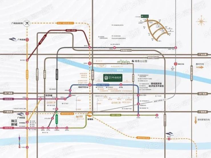 项目最大的交通优势是地铁。目前已开通的地铁21号线(凤岗站)距离项目约1公里左右,属于步行可达范围(具体距离以实际测量为准)。21号线可快速直达天河,快线车仅需约30分钟即可到达天河天河公园、员村等核心区域,对于在天河、黄埔工作的通勤族是实实在在的利好。