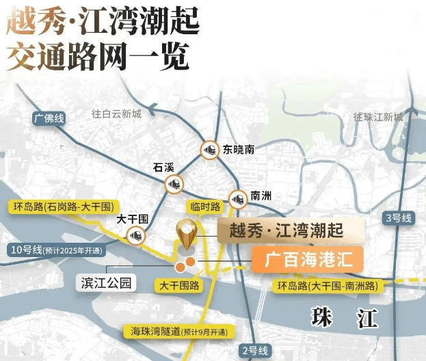 便捷的交通网络:距离地铁10号线大干围站仅约650米,海珠湾隧道和环岛路的开通将进一步提升出行便利性。