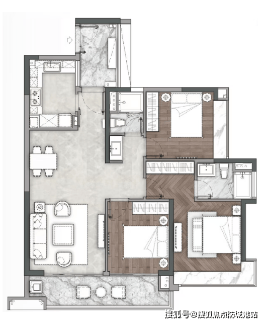在售产品:120-190㎡三房、四房户型(A 组团主推)