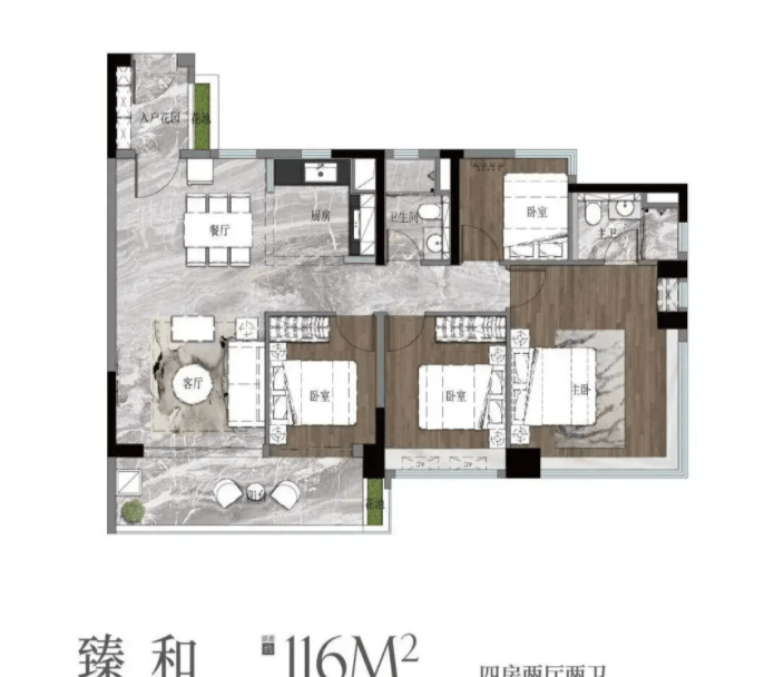4. 116㎡四房两卫:改善家庭优选,LDKB一体化方厅设计