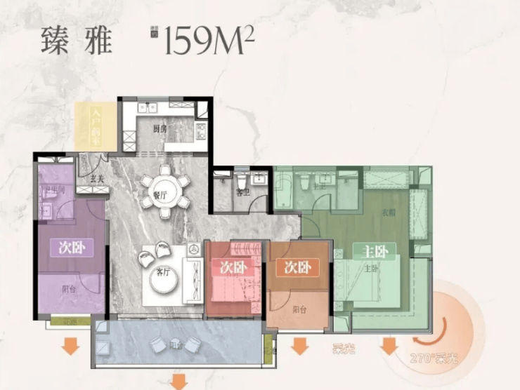 5. 159㎡四房三卫:终极改善标杆,五开间朝南享奢华居住