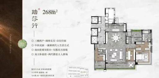 住宅户型涵盖107至268平方米,设计注重空间通透性、功能性及舒适度。中大户型配置独立入户大厅、双衣帽间及双台盆主卧,合理划分生活与休闲区域。户户朝南,保证良好采光。小高层板楼设计结合楼间距及光照方向,优化通风效果,实现居住舒适性最大化。
