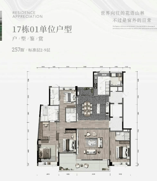 260-350平方米大平层:超大面积的户型设计,让每个房间都能享受到充足的阳光和开阔的视野。客厅、卧室等主要功能区均采用了大面积落地窗,打造全景式居住体验。