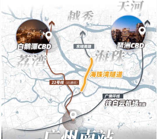 城市道路交通层面,项目周边构建“四横四纵”主干道路网,四横涵盖汉溪大道、兴业大道、南站北路、石洲中路,四纵包含东新高速、广州大道南、新光快速、华南快速,形成便捷的地面交通体系。其中东晓南路-广州南站连接线南段计划2025年与海珠湾隧道同步建成通车,通车后南站与海珠城区15分钟互通,30分钟直达珠江新城CBD,彻底打通南站与广州主城的交通脉络,自驾出行全程高效无拥堵。