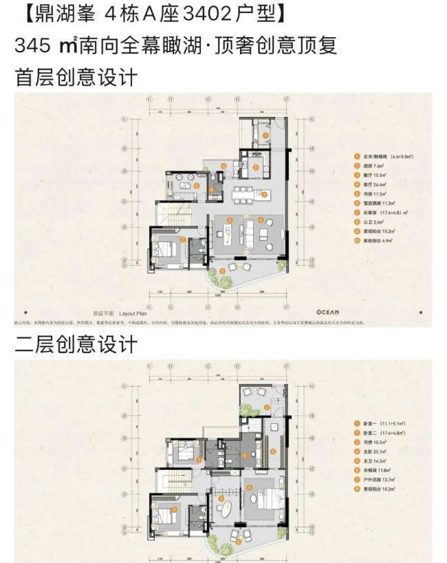 户型设计亮点满满。涵盖多种面积段和户型类型,满足不同家庭结构的需求。大平层户型多为南向一线望湖,采光和景观极佳。复式产品以 “双钥匙双入户” 设计为亮点,兼顾隐私与仪式感。空间设计注重尺度与功能融合,如 345㎡顶复和约 438㎡复式的独特空间布局,提升了居住的舒适度和品质感。虽然文中未明确提及得房率,但从整体设计来看,空间利用较为合理,居住舒适度较高。