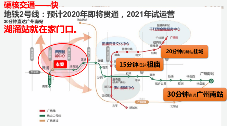 项目不仅紧邻地铁2号线湖涌站,还拥有“三纵三横”的城市主干道网络,包括佛山一环、禅西大道、佛山大道等,让居民可以快速抵达佛山及周边城市的各个角落。此外,广佛环线也进一步提升了项目的交通便捷性,连接了广佛新中心及四大交通枢纽。