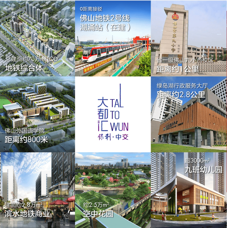 作为佛山首个纯住宅TOD项目,保利中交大都汇充分利用了其优越的地理位置,打造出一个集居住、办公、商业于一体的综合性社区。项目分三期开发,涵盖了洋房、小高层、商业、办公等多种业态。